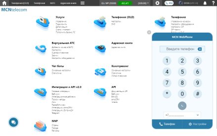 MCN WebPhone позволяет пользователям совершать SIP-звонки прямо из Личного кабинета, используя подключенные телефонные номера.